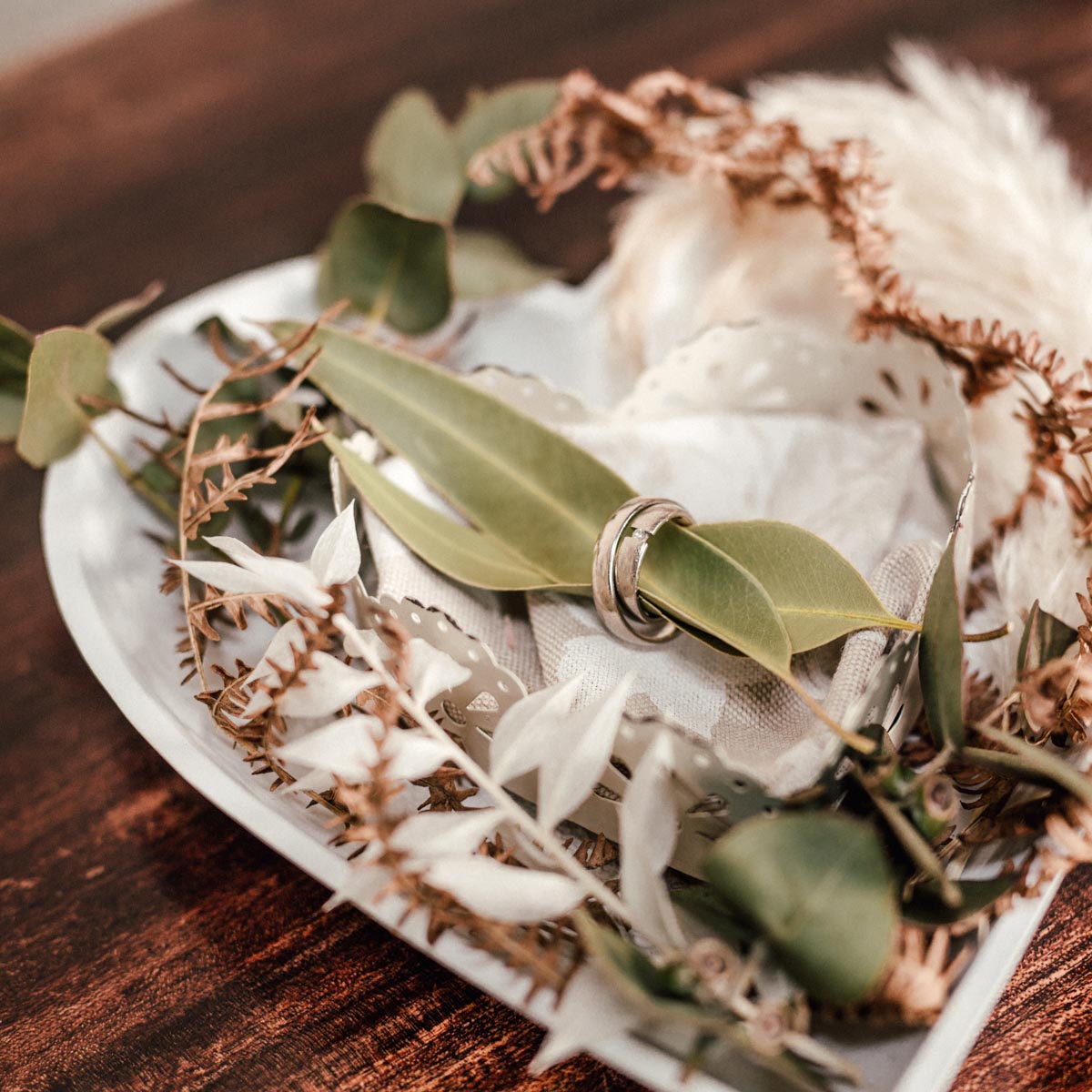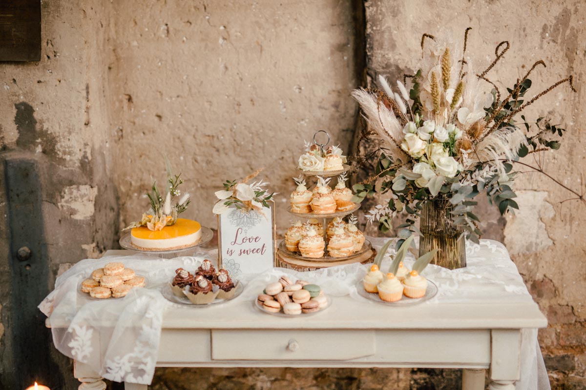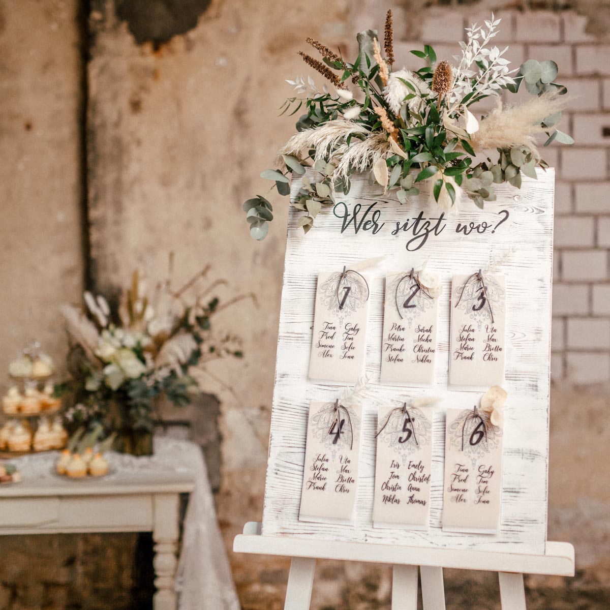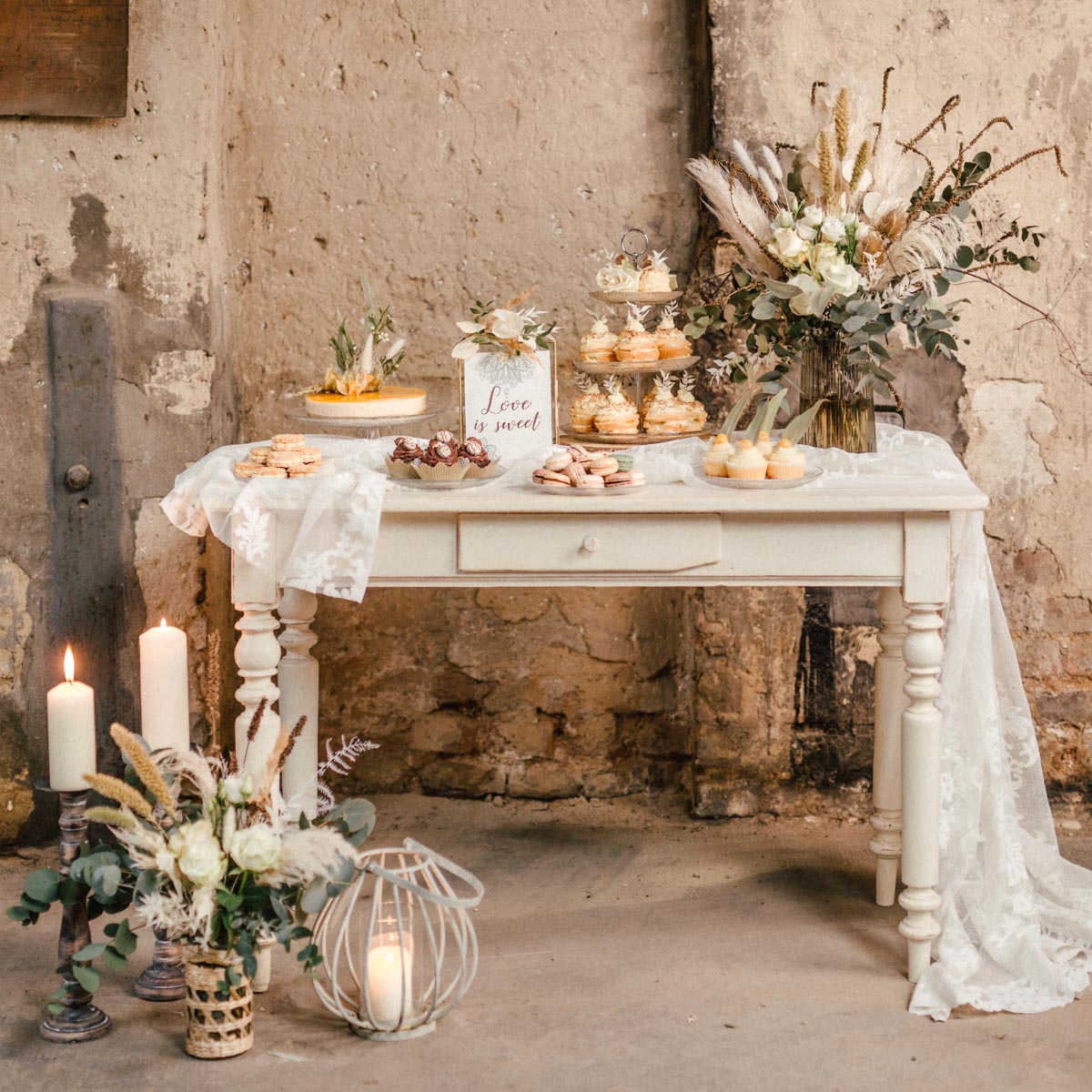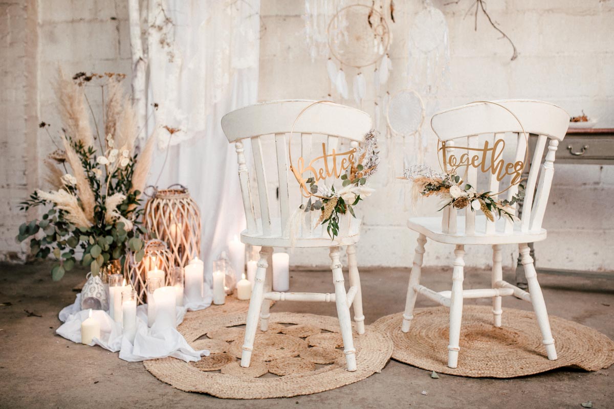 Sanftes Weiß, luftige Stoffe und feines Pampasgras verschmelzen mit liebevoll ausgewählten Vintage-Elementen. Zarte goldene Akzente setzen warme Highlights und lassen diesen Stil neu aufleben.
